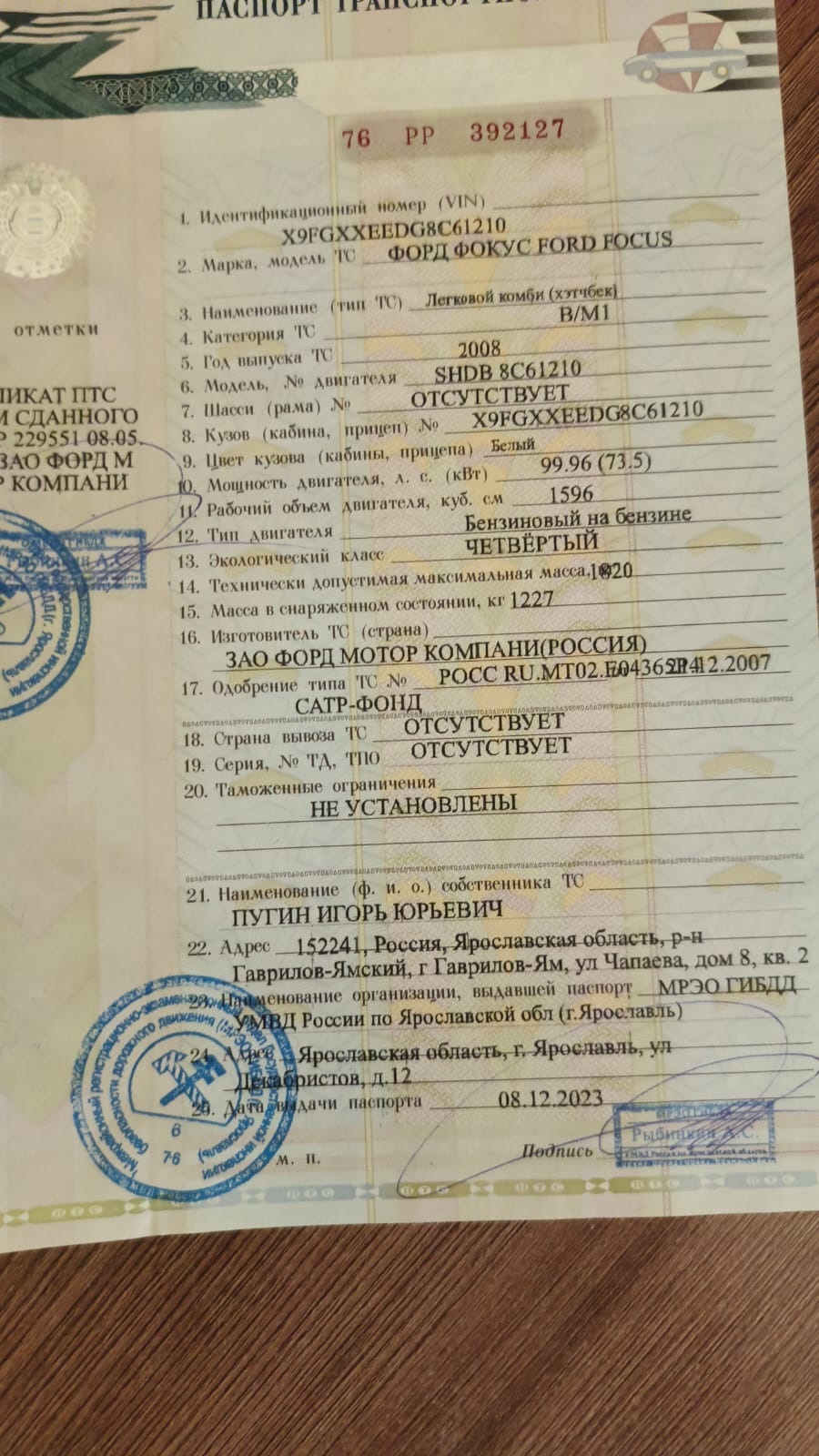 | Cведения об имуществе (предприятии) должника, выставляемом на торги, его составе, характеристиках, описание | Ограничение- залог АО «ТБанк». Определением Арбитражного суда Ярославской области от 17.03.2026 г. А82-14504/2024 утверждено Положение о порядке, об условиях и о сроках реализации имущества должника Пугина Игоря Юрьевича в редакции финансового управляющего Жукова Михаила Николаевича, представленной в материалы дела 03.02.2026. Шаг аукциона 5% от начальной цены. |